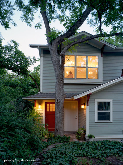 Jason and Suzanne Koxvold commissioned Studio Padron to design a 200-square-foot guesthouse on their Ellenville, New York, property. The geometric structure’s dark cedar cladding contrasts with the inviting interior, which is heated by a cast iron Jøtul stove. A layer of built-in bookshelves made from felled oak lumber also helps insulate the building in winter. While not distinctly designed for a grandma, the minimalist exterior and warm interior filled with books is certainly an inspirational example. Exterior stairs are both a cost-efficient and space-savvy garage loft idea. Anything that pierces the garage ceiling or connects parking and living spaces must be properly sealed to stop exhaust fumes from reaching inhabitants.
